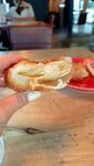 Гости города. Из плюсов приятные девушки на кассе и красивый стаканчик. Цезарь бесвкусный соус, мало курицы, много сухарей, одна помидорка. Курица обжарена на сковороде, сухари свежие , но без трав, без специй. В салате не хватает баланса ингредиентов и вкуса. Картофельная вафля с пашот и красной рыбой норм, но не более. Всего и понемногу, и листья, и авокадо и зачем-то петрушка с укропом Подача как дома ( все лучшее сразу 🤣) Круассан. Тесто непропеченое внутри и вкус у него булочки. Кофе хороший Туалет грязный очень. В зале грязно. Мебель старая, стулья не соответствуют высоте столов. Кармашки для приборов грязные. Ощущение непромытости Сервис отсутствует Из всего описанного цена не соответствует качеству. Санитария 2, вкус 3, сервис 3