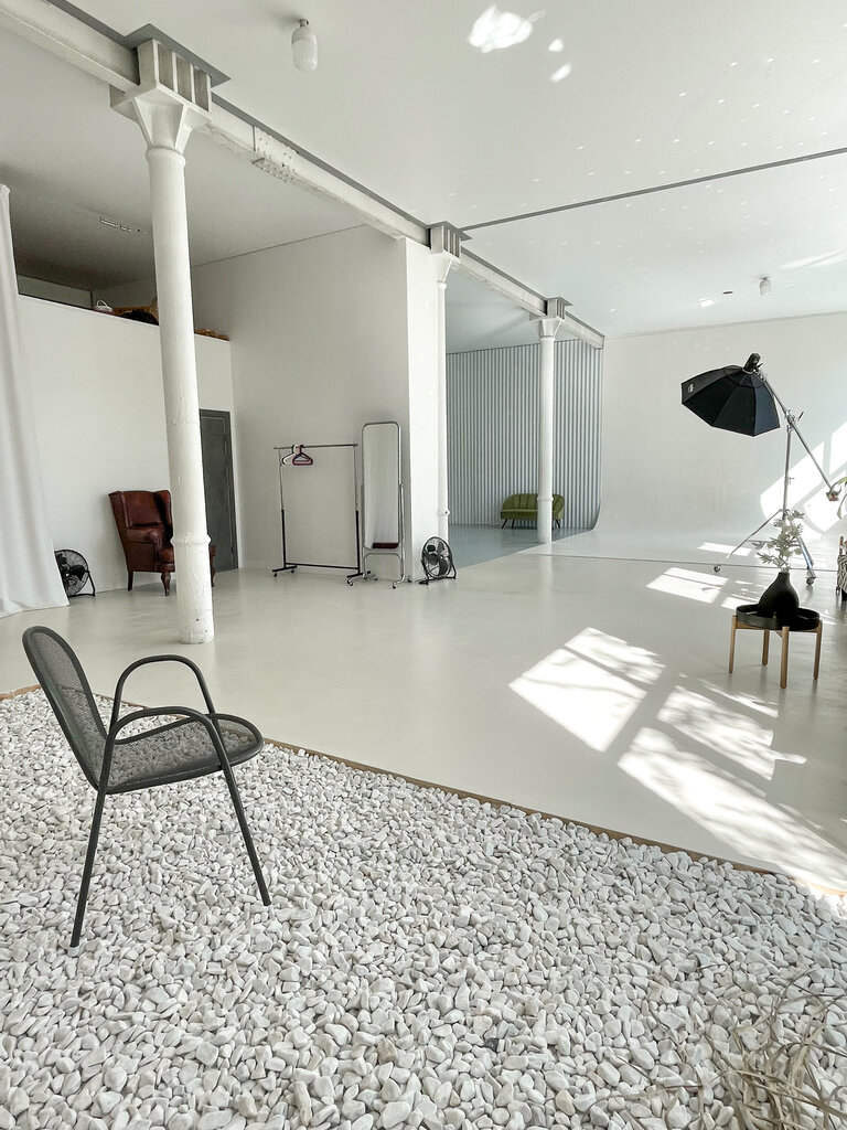 Бронирование день в день по согласованию - Зал с прямой циклорамой 5х5м. Площадь зала 140 м². - 4 больших окна - 4 импульсных моноблока Godox Ad600 - 4 моноблока постоянного света - Октобоксы, стрипбоксы, софтбоксы, рефлекторы, гобо