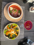 Великолепная авторская кухня. Нестандартные решения - очень вкусно. Гаспачо с арбузом, салат с жареным персиком, панаеота с арбузом, коктейль с кинзой- это шедевр. Лучшая кухня в Розе и на Красной поляне.