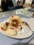 A variety of desserts and pastries, pleasant colors and a light atmosphere. At the same time, the Service kills everything: why take all the orders if two girls can't cope. Not everything is served on time at once, first the pancake was warmed up, then the cappuccino was served. The pancake has cooled (( reheated and over-dried. A family of 4 people next to each other in the same way: first they got desserts, then they waited for drinks - well, such a picture.