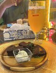 Твердая четверка! Кормят вкусно, официант был совсем без настроения и все забывал, приходилось напоминать. Пятерых взрослых посадили за один стол, при этом троих взрослых с тремя детьми посадили за два(немного не приятно). Шашлык свиной хорошо прожарен, вкусный. Люля из говядины был сочный но очень пересолен. Салаты все вкусные особенно порадовал цезарь. Наггетсы не очень вкусные, а хот дог с говяжьей сосиской вкусный. Цены на алкоголь очень прияные