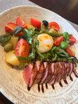 Ооочень вкусный нисуаз, тунец аль денте как я люблю всё свежее и сытное , фитучини с креветками бомбовские видно, что качество продуктов очень хорошее . Цены на удивление для ресторана очень приятные . Ставлю 5+