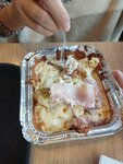 Много раз видел, проходил, но как то не довелось посетить, попробовать, и вот вчера 24.10 удача улыбнулась. Сделали заказ, всего три блюда, омлет, паста, ролл с ветчиной и сыром, заказ принят в 13:16, получен в 13:40, за это время успел сходить помыть руки, сходить в Сигму у дома, ну и долго смотреть на проспект Ленина. Не обольщайтесь, это не высшая школа кулинарии, и да блюда вы получаете в небольших алюминиевых боксах, хммм как в самолете, но не так же по вкусовым качествам. Блюда это "шедевр", у меня был омлет с копчеными колбасками, при всей моей любви к соленой пище, тот кто готовил данный омлет очень сильно в кого-то Влюблен! Омлет не жарится он запекается, при этом шкаф/духовка/микроволновка где блюдо готовилось пропекает не равномерно, но фото видно что в углах запечено так, что вилку вставить туда не смог, лук сверху как украшение скорее ошибка чем украшение, в связи с тем что он термически не приготовлен, был горьким и после приема пищи осталось легкое послевкусие и амбре в виде запаха. Паста, заявлена куриная с грибами, на фото виден бекон, ( не знал что у курицы есть бекон, ну да ладно), вместо самой пасты, были макаронные изделия по форме спираль. По вкусовым качествам, соль, соус супруга осталась довольна, но диссонанс сделали макарошки спиральки и бекон. Ролл....его в том числе запекали, начинка вкусная, но оболочка из лепешки запечена до золотистого колера, и при откусывании части ролла, лепешка сыпется на стол. Вывод если вы сильны в пицце для чего устраивать разносолы? Думая за 650 р. через дорогу съел бы булочку с котлеткой, запил бы кофе, наверное и картошку положили бы. Обед совершенно не эконом, а по качеству грустно....