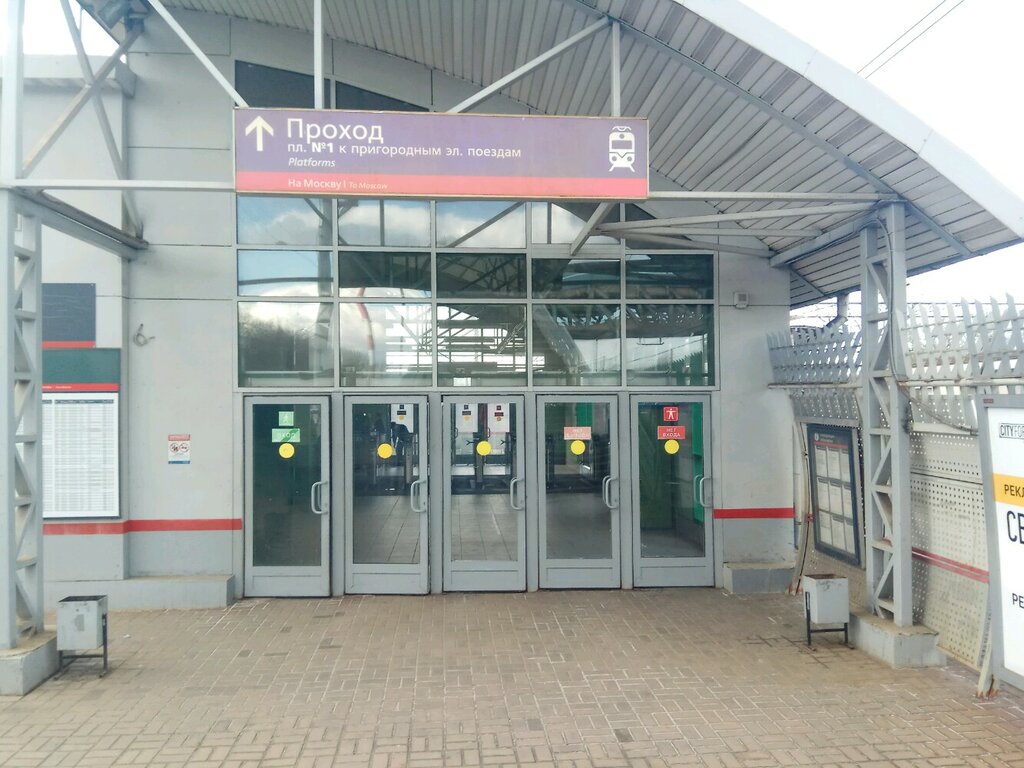 Касса на платформе по направлению к Москве. Закрытое от непогоды помещение, можно переждать ненастье, ожидая электричку. Билеты в кассе продают быстро, есть возможность успеть на прибывающую электричку.