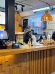 Наконец-таки хотим поделиться восторженными впечатлениями о кафе «Тили‑Тесто» в фае Московского вокзала! В январе, по воле случая или сложившихся обстоятельств несколько раз посетили это место. Прежде всего, в восторге от фирменных сэндвичей‑круассанов. Попробовали два варианта — с лососем и с ветчиной. Оба просто восхитительны! Круассаны — идеально хрустящие снаружи и нежные внутри, начинка щедрая, продукты свежие. Особенно впечатлил сэндвич с лососем: рыба качественная, не пересоленная, сочетается с мягким твороженным сыром и свежими листьями салата. Сэндвич с ветчиной тоже на высоте — мясо ароматное, а круассан прекрасно дополняет вкус. Вот сейчас описывал и прям "слюнки потекли". Отличное решение для быстрого, но очень вкусного приёма пищи. Отдельно хотим отметить работу девушки на кассе с бейджиком ‑ Татьяна. Работает на высшем уровне сервиса: Татьяна встретила с улыбкой, вежливо ответила на все наши вопросы, а их была тысяча т.к. мы переживали, что возьмём что-то не то), дала полезные рекомендации по меню, на улице было очень холодно и по её советам мы выбрали кофе, "Ооо, эти" сытные круасаны в виде огромных бутербродов с начинкой и в дорогу горячие напитки Брусничный и Гранатовый пунши. Видно, что девушка действительно любит свою работу и заботится о гостях, на секунду показалась, что Татьяна даже готова отдать свой тёплый жилет, чтобы моя супруга могла согрелась), такая доброжелательность особенно ценна в суете вокзала, да и в общем, где всем на всех плевать. Обстановка в кафе тоже приятно удивила. Несмотря на расположение на вокзале, здесь удалось создать уютную атмосферу, стоило только переступить "порог кафе", как мы попали ,словно совсем в другое место, забыв что находимся на вокзале: чистые столики, приятная цветовая гамма интерьера, достаточно места для комфортного размещения большого количества человек в маленьком кафе, ненавязчиво играющая музыка, заглушающая весь шум и гам огромного вокзала. Видно, что за порядком следят — всё аккуратно и опрятно. В общем, «Тили‑Тесто» — отличное место, чтобы перекусить перед поездкой, а кому-то отдохнуть во время пересадки. Вкусная еда, отличный сервис , приятная атмосфера, работает замечательная леди— зайдём сюда ещё не один раз, когда будем на Московском вокзале!