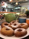 Заходили сегодня поесть пышки. Пышки были вкусные и свежие. Взяли с сахарной пудрой и с ванильной начинкой. К еде вопросов никаких нет, а вот отсутствие чистоты в заведении очень огорчило. Такой красивый и уютный интерьер, но все столы в сахарной пудре, цветочных лепестках и на одном столе стоял недопитый кофе☹️ Персонал никак не реагирует, сидит в телефоне, хотя кроме нас никого не было. Одну звезду снимаю именно из-за грязных столов.