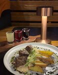 Были в этом ресторане 12.09.2025. Некоторых блюд не было в наличии, но это логично, так как в регион сложно доставить всё. Блюда отдавались около 60-80 минут, сначала отдали одно блюда, после спустя минут 20 остальным гостям за нашим столом, при том что заказали мы одновременно. Это не правильно с точки зрения, что остальные гости сидят без всего, хотя думаю котлеты готовятся не дольше оленины. Брали там котлетки с пюре (нормально, хотя на утро живот был странным, не факт что от них). Суп - хороший, но не вау Оленина карэ. Очень крутое, да долгое, да мало. Но подача и вкус хорошо. Кофе средний. Ааа, и момент странный. Заказали вишневый эль, вместо него принесли пиво светлое "пшеничка", уточнили у официанта, что возможно ошиблись и попросили принести то что мы заказали. На что официант уверил, что это вишневый эль. Мы не поняли, попробовали и все поняли, что это обычное светлое пиво. Позвали другого официанта и уточнили, может быть где-то ошибка и другой официант не верно нас понял, но нас так же уверили что это вишневый эль, на вопрос "подскажите, а разве вишневый эль не должен быть темного красного цвета и с запахом вишни", нам ответили что не знают. Ноооо, спасибо девушке этой, она предложила просто заменить. Заменили на морс. В общем что можно было бы улучшить: 1. Предупреждать гостей о увеличенном времени отдачи блюд. 2. Проверить официантов на знание меню. 3. Проверить позицию "вишневый эль". 4. Проработать сервис с администратором, так как мы звонили заранее, чтоб забронировать стол, нам сказали что перезвонят. В итоге мы пришли, там много (4-5шт) свободных столов, нас спокойно посадили. Нооо, никто не позвонил сказать, что освободился столик для нас.... Лучше тогда не обещать. Атмосфера хорошая (антураж).