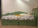В 2021 и 2022 годах приобретали частями комплект мебели серии Айно в спальню для девочки: шкаф, тахту, комод, тумбу и зеркало. Цвет олива, массив. Очень красивый изысканный дизайн. Много вариантов расцветки. Качество изготовления хорошее, брака или каких-либо недостатков не было. Собирал мастер по инструкции, все необходимые детали были в комплекте. Доставка в г. Калининград без задержек, упаковано хорошо, повреждений не было. Более чем за 3 года эксплуатации мебель осталась в отличном состоянии. Эмаль нигде не потрескалась, детали мебели не рассохлись, тахта не скрипит. Местами проявились пятна от сучков, но производитель об этом предупреждает (именно при заказе массива). Сейчас планируем приобрести еще одну тахту для второго ребенка из этой же серии.