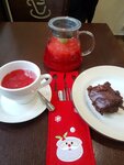 Приятное место, чтобы зайти согреться и отдохнуть от суеты. Вежливые официанты, кроме того, порадовало, что можно скорректировать напиток по вкусу: по моей просьбе приготовили ягодный чай без сахара/сиропа - получился прекрасный малиновый кисленький витаминный заряд! Выпечка привозная. Зал достаточно просторный в спокойных светлых тонах, а поскольку кафе находится в торце здания, то получает много естественного света из окон-витрин. Туалет чистый, не тесный. Хороший уровень для районного кафе.