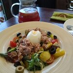 Меню небольшое, но разнообразное. Еда вкусная. Для любителей чаепития большой выбор. Персонал в большинстве своём внимательный. Уютная атмосфера. Довольно часто посещаю. Последнее посещение было испорчено, надеюсь что это разово и больше никогда не повторится. В салате нисуаз попался длинный волос и несвежие анчоусы(испорченные). Такое впервые, но очень неприятно.