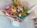 Заказывла доставку цветов 8 марта! Собрали очень красивый букет с разнообразными цветами! Упаковка идеальная! Всё аккуратно) общение приятное, грамотное, несколько рез уточняли, что требуется, куда доставка, в какое время) были на связи и отвечали на все вопросы! Цветы все свежие, стоят уже 3ий день! Не смотря на загруженность в праздничный день доставка была быстрая, курьер вежливый, вручил букет и поздравил с праздником! Также по моей просьбе вложили в букет милую открытку с определенной надписью 😍резюмируя, хочется сказать большое спасибо за оперативность, красоту и хорошее настроение! (1 фото - в день вручения, 2 фото - 10 марта)