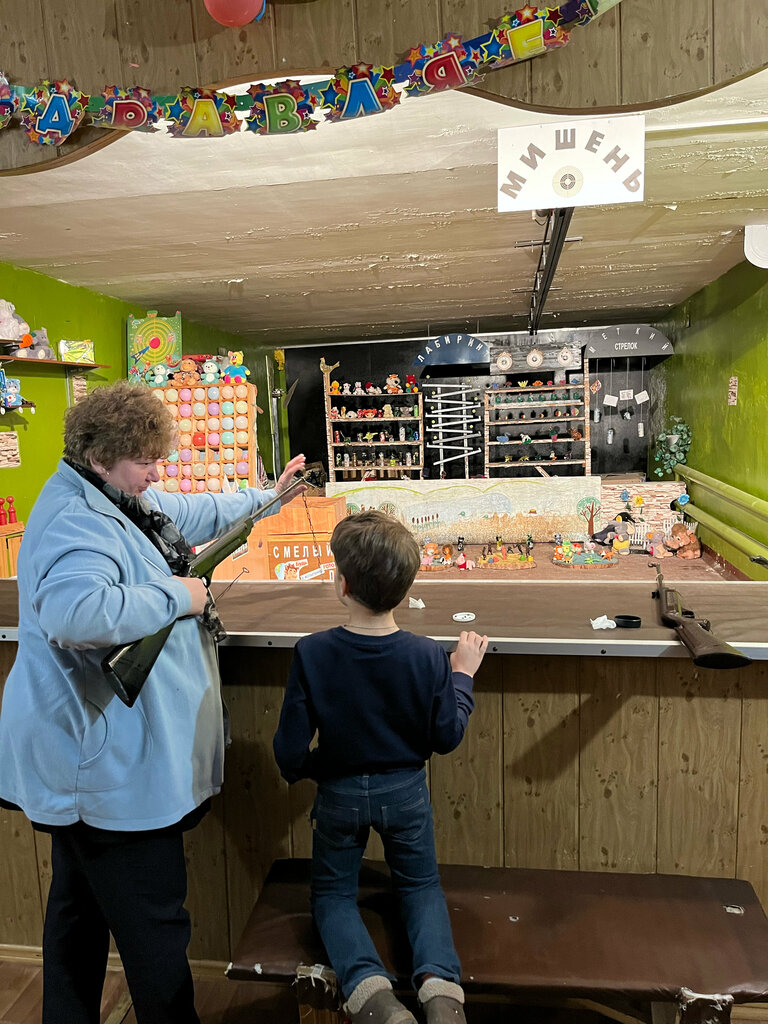 Отличное место, советую Всем! Если вы с детьми, то ребенка всему обучат и объяснят. Взрослым тоже интересно, есть сложные игры на меткость. Ружья все отлично смазаны и хорошо пристреляны. Большое спасибо за возможность окунуться в детство.