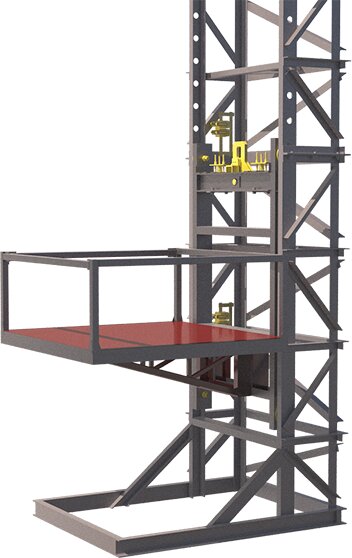 Консольный подъемник – это платформа, движущаяся по расположенным на мачте направляющим. Благодаря этой системе, мачтовый грузовой строительный электрический подъемник становится очень бюджетным.