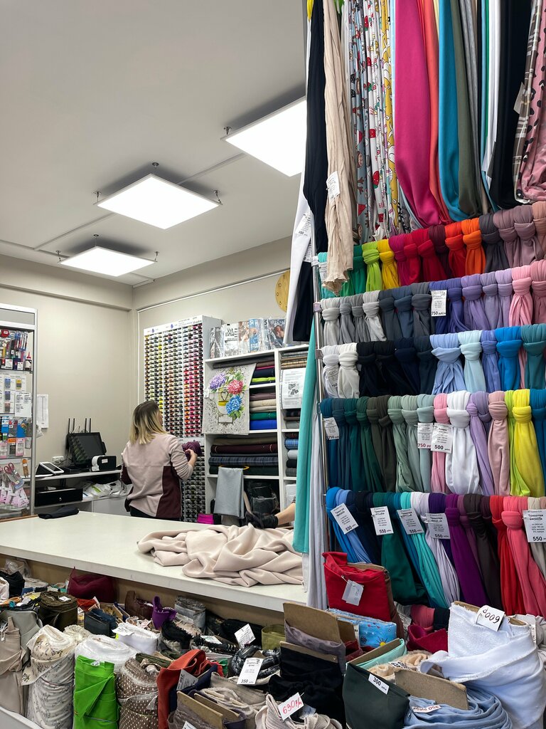 Классный ассортимент тканей, чудесные девчонки которые всегда подскажут, посоветуют, отрежут аккуратно) Места не много, но всегда порядок и чисто. Регулярные скидки на акции - крутая опция, спасибо!