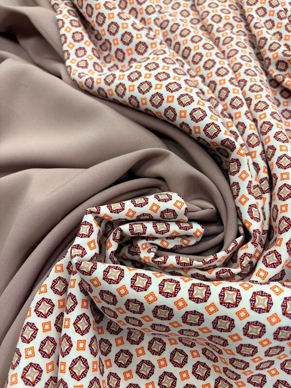Состав: вискоза 84% шёлк 16% Пр-во: Италия Ширина: 150 Цвет: коричневый, белый