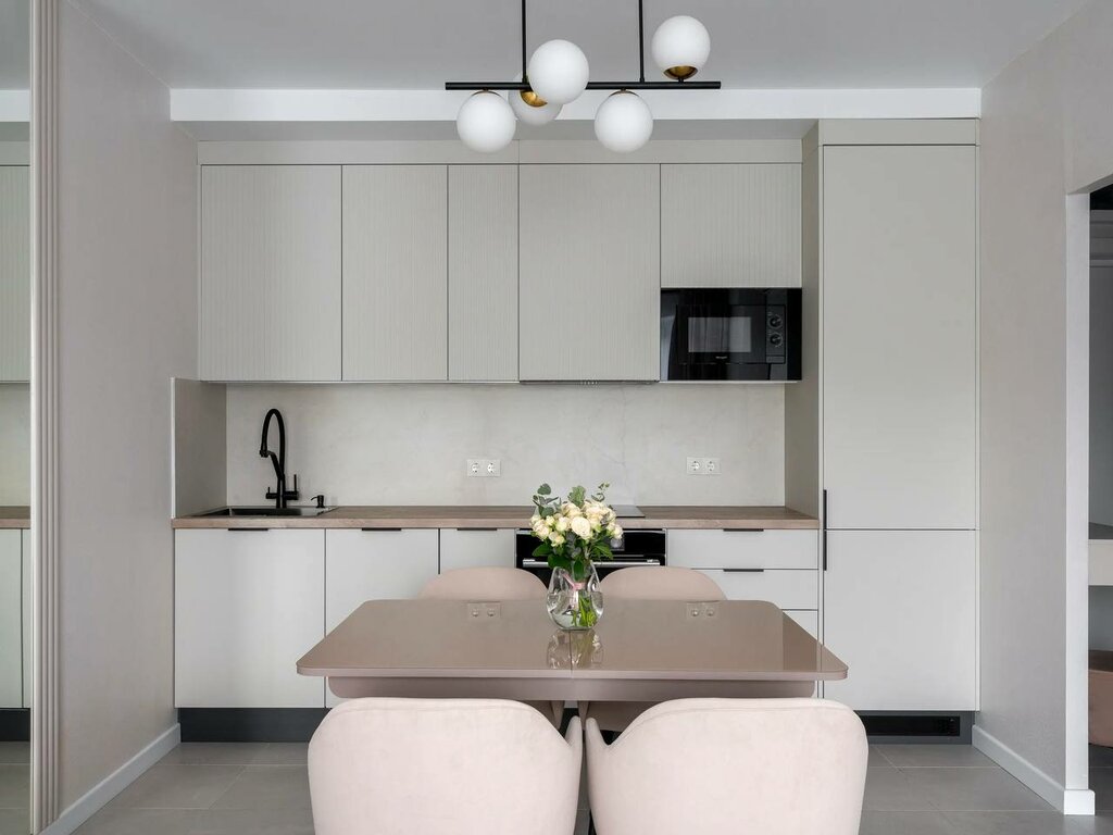 Скандинавская кухня в стиле минимализм: светлые тона белого и бежевого, ЛДСП, МДФ, металл. Создайте функциональное, уютное пространство, где каждая деталь вдохновляет.