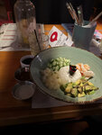 Пришли в заведение, приняли хорошо, усадили за стол. Заказали еду, напитки принесли сразу, но еду через 50 минут. Ну ладно. Принесли салат и утиную ножку. Потом ждали 40 минут, когда принесут роллы и поке. Позвали официанта. Сказала: «Через минут 5 принесут, так как повар стажер» . Ладно с кем не бывает. Ждали. Через минут 20 снова вызываем официанта. Оказывается они не разморозили курицу для роллов и не начали их даже готовить. Дальше ждали минут 30 ПОКЕ, авокадо было какое то странное все черное . Официант молодец, хорошо сделал свою работу, за это большой плюс. Может быть нам просто не повезло, что такое произошло, а может так и всегда.