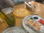 Очень вкусная пицца и роллы, красивая обстановка, вежливый персонал.