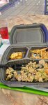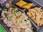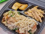 Мяса в блюдах -по два кусочка. Лапша и рис слипшиеся. Вид не очень. Две звезды только за то, что не траванулись. Уже хорошо.