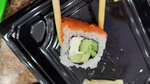 Грустно и невкусно. Сет абсолютно пресный. Васаби не острое, соевый не солёный. В Филадельфии огурцов больше, чем сыра.