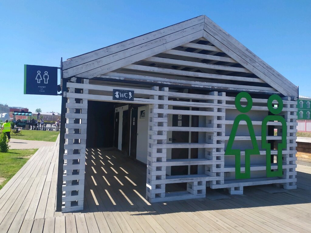 Этот туалет не подключен к центральной канализации! То есть - как на даче! Приезжает специальная машина и откачивает. Вы гуляете - она откачивает! Если не успели вовремя откачать - то через край... Единственно - бесплатный. Внутри унитаз из нержавейки, как в поезде. Воняет тоже, как в поезде. И по чистоте - так же. И расположение. Какой умник догадался устраивать это сооружение прямо в центре набережной, практически на детской площадке?