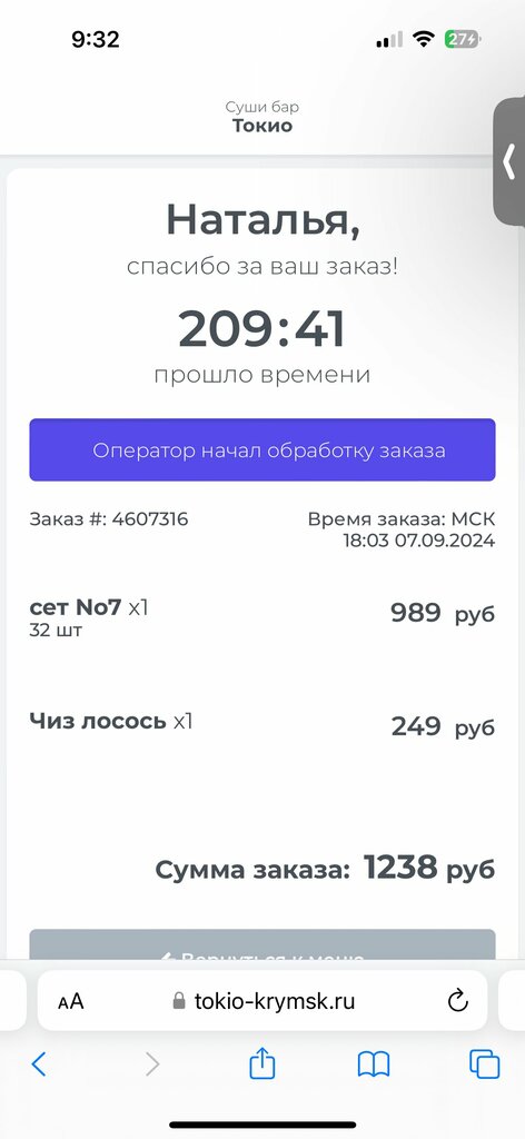 Хочу написать о том, что сегодня мне роллы так и не довезли. Заказывала через сайт, прождали 3,5 часа. Статус заказа все это время был «Оператор начал обработку». Но увы, их так никто и не привез! Если уж создаете сайт для заказа, будьте добры его тоже оформлять! Вечер был испорчен😔