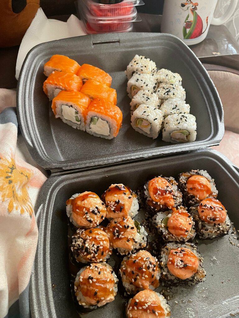 Доставка долгая, номер телефона перепутали . Заказывали роллы Филадельфия люкс получили лайт который посыпали икрой 😔. Визуализация не соответствует ни цене не картинке с сайта .