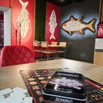 It's very cozy. The board games also pleased to pass the waiting time for the order. By the way, the order was prepared quite smartly, it's nice :) The interior is funny, but a large company is likely to still have little space. I think they work mainly for takeaway and delivery) The kitchen is good, there is a choice, I recommend visiting😉