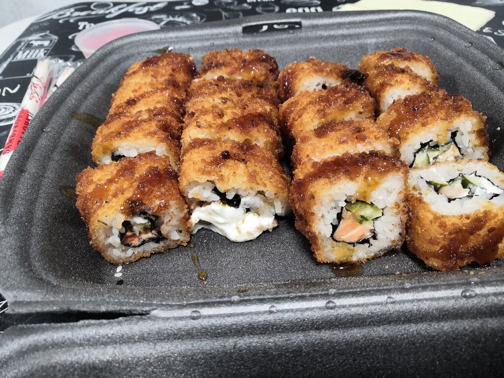 В вегетарианкском супе мисо вместо сыра тофу была КУРИЦА. В солянке вместо заявленных говядины, курицы и охотничьих колбасок были бекон, докторская колбаса и сало 🤢 вылили всё в унитаз! Роллы тоже и близко не соответствуют фотографиям в деливери и инстаграме. Рыба вся перемороженная и безвкусная. На следующий день после этих роллов диарея дикая началась, уже второй день... А я уж думал мне показалось, что лишняя кислинка присутствует... После получения заказа пытался решить конфликт, в ответ полный игнор.