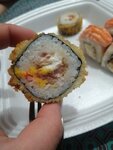 Сегодня зашли, получили тухляк в Филадельфии... Спасибо, очень приятно (в кавычках, конечно). Вы хоть бы нюхали чего даёте по 70 рублей за штуку. Сколько у вас эта рыба стоит на прилавке? По три дня? Оставляйте тогда себе на ужин этот смак, раз считаете, что всё в порядке, интересно будет посмотреть кто на следующий день у вас с унитаза слезет и на смену выйдет. И тут не в наших рецепторах дело, сушина сама отказывается идти в горло, принюхались - очевидно, воняет тухлой рыбой. Теперь извольте не возмущаться, когда люди у вас будут каждую сушину к носу подносить, если будут вообще!