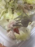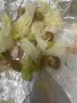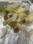 На фото том ям с креветкой , и цезарь с курицей сырой и без соуса , просто ужас , не когда не встречала такой ужасный сервис !!! Не когда не заказывайте ! В том яме 2 креветки повидавшие жизнь ( на фото ) и 3 ломтика шампиона , больше не чего !!!