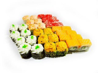 Филадельфия лайт(лосось, сыр,огурец), калифорния(краб,сыр,огурец,масаго), кани-маки(сыр,курица ,краб,томат,огурец,сырный соус,унаги соус), горячий(сыр,курица,огурец,томат,сырный соус,спайси соус), сяке-маки(лосось).