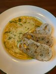 Были вчера с подругой в ресторане. Заказала удон с горгонзолой и цыпленком. Блюдо просто невкусное. Безвкусное, пресное. Так как я подумала,что это "вкусовщина", а потраченных денег было жалко, то забрала его с собой домой в надежде, что соль его спасёт и я съем его на обед с целью экономии. Но уже дома обнаружила,что в лапше был кусок курицы с костью, кожей и хрящиками. Считаю, что так не должно быть в ресторане. Жаль, что не обнаружила данный кусок в кафе, обязательно попросила бы вернуть деньги. В тоже время сырный суп оказался замечательный, один из лучших, который я ела. Рекомендую пересмотреть подход к приготовлению удона с горгонзолой, позиция не удачная. К интерьеру, чистоте и персоналу вопросов нет - молодцы.