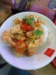 Это блюдо для тех, кто любит яркие вкусы. Курочка получается нежной и с хрустящей корочкой. Кисло-сладкий соус придаёт ей экзотический вкус. Рис и томаты черри служат отличным гарниром