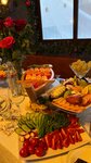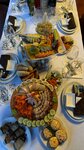 Вот и прошла неделя, как я отпраздновала свой Юбилей в кафе Томаго ( г.Апрелевка). Страсти утихли, эмоции подуспокоились, пришло время написать отзыв. Данное кафе посоветовал мне мой племянник, т.к. посещал его несколько раз. Приглашённых набралось 20 человек, поэтому снимали основной зал. Вот некоторые выдержки из высказывания моих гостей -" ... И повидались, и плясали, и какой стол богатый был!";ещё "....стол был так красиво оформлен, что глаз не отвести, а еда оказалась настолько разнообразной, что мы и не знали, что в этом заведении, такую могут падать!"; " ...А стол! за всю прожитую жизнь не видала такого красивого оформления, изобилия продуктов, и очень вкусно приготовленных!" и т д. А вот моё личное мнение. Как только вошла - изумилась. Зал был оформлен очень нарядно: белые скатерти, вазы с цветами и свечи на столе, сервировка- супер. Итак, по меню( скажу сразу, что все напитки и торт принесли с собой, заплатив пробковый и сервисный сборы), заказали салаты 4 вида( цезарь, оливье , греческий, и аджапсандал) по 7 порций( это была моя инициатива, беспокоилась , чтоб гости не остались голодными)- это очень - очень много. К концу праздника остались нетронутые блюда салатов, т.к.гости хотели попробовать и баклажаны по- грузински, рулетики из баклажан с беконом, шампиньоны по- грузински, изуми спринг, шашлыки, люля и ещё много блюд. Изюминка стола, это сеты ( ролы, суши ) с рыбным ассорти- оригинальная подача в кораблях. Мясное и сырное ассорти очень красиво оформлено . Был Жульен с курицей и грибами (прежде чем, заказывать это блюдо на банкет, попробуйте). Далее разнообразные закуски (в том числе соленья- вкусные) и гарниры( горячая картошка по- деревенски понравилась). Еды было предостаточно , но ничего не пропало. Заранее с собой взяла одноразовые контейнеры, так что и на следующий день гости и я вкусно покушали. Красивый зал и стол, музыка , танцы ... Всё было превосходно. Большое спасибо всему персоналу, и в первую очередь Даше и нежной светленькой девушке ( к сожалению, не знаю как зовут) за качественное и оперативное обслуживание нашего стола. Быстро, аккуратно приносили блюда, убирали посуду, моментально реагировали на любую просьбу, касающуюся мероприятия. Особую благодарность хочу выразить Инге Пак( руководитель ). С самого начала , как только я пришла в кафе выбрать дату проведения и до окончания торжества, всегда была на связи. Несколько раз вносили изменения в меню. На многие интересующие меня вопросы по организации банкета, при первой возможности были объяснены. Доброжелательна, вежлива, внимательна, отзывчива, приятно было общаться на протяжении данного периода. Мне понравилось всё. Я рада, что выбрала это кафе для своего торжества. Безусловно, я советую это кафе для проведения небольших свадьб, банкетов, и других праздников, а также просто прийти и вкусно покушать.