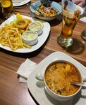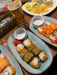Не понравилась реакция персонала на нашу большую компанию- свободных столов нет и предлагать варианты рассадки на 8 человек они не спешили. В итоге мы сами предложили как нам сесть и спустя пару минут официант пригласил нас пройти к столам. Очень вкусная солянка, безумно понравился салат из баклажанов. Кольца Кальмара и фри готовили в одном фритюре- фри было со вкусом кальмаров. Роллы оставляют желать лучшего, форма разваливалась, дешевый рис и совсем не много рыбы. В общем и целом на троечку сойдет, но ожидали большего.
