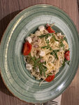 Плохой филиал Томато в аркаде, сначала приносят пасту, затем салаты. Без преувеличения половина позиций в меню отсутствует, нет буженины для салата, нет фасоли, нет супов, нет помидоров черри, положили обычные, но зеленые. В ухе был один болгарский перец. В других Томато такого не наблюдали