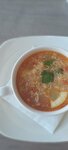 Могу понять всё, что связано с этим кафе, но не могу понять одного. В меню есть суп под названием " мега том- ям". Том- ям он и сам по себе, в привычном виде, суп далеко не маленький сытный, как и все азиатские супы, так этот ещё и МЕГА. Вдохновившись данным названием мы приняли решение увидеть это МЕГА произведение кулинарного искусства и сделали заказ. В результате мы увидели нищую мини тарелку, которая до размера и стандартного-то том-яма в иных местах не дотягивает не то что до почетного звания МЕГА. Окей, может он мега по вкусу, скажите вы. Ничего подобного - блеклая водичка с привкусом пасты том-ям и скромным набором морепродуктов. Очередная попытка от томато угодить всем, но в итоге очередной провал.