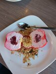 Блюда вкусные, подача быстрая, хотя были в выходной день. Очень мешала громкая музыка, что невозможно было услышать друг друга. И еще вокруг постоянно билась посуда)) Итогом вечера стал случайно обнаруженный волос или волокно в десерте. Но спасибо персоналу, нам сказали не платить за него и принесли дополнительное блюдо в качестве извинения.