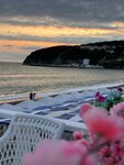 Обедали в столовой и вечером были в ресторане за столиком на веранде на втором этаже с видом на море. Обед комплексный можно выбрать из приготовленных блюд, вполне съедобно, особенно после моря, когда хочется есть. Ресторан вечером - конечно совсем другая атмосфера, гирлянды сверкают, столики украшены цветами, фотозона в виде сердца с надписью одноименной названию заведения. Внизу танцпол, самый многолюдный и молодёжный из видимых нами на побережье. Цены на всем побережье плюс минус одинаковые в таких заведениях, посидеть в красивом месте и потанцевать среди молодежи - это сюда. Меню вполне себе: морепродукты, гриль, пасты - выбрать можно. Рекомендую к посещению.