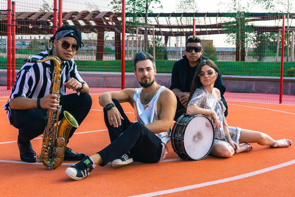 Полный состав группы. 6 человек. Мужской и Женский вокал, саксофон.