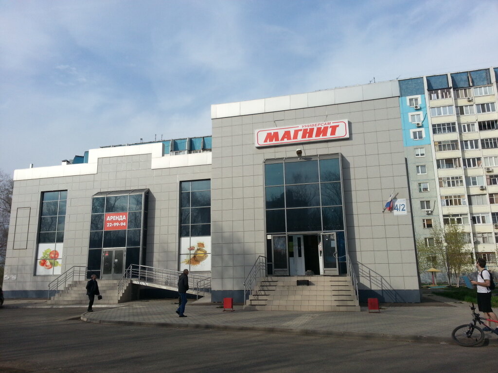 Магнит и кафе пёстрый чемодан. Хорошее место и не дорого и Вкусно. Советую заглянуть на обед или ужин.