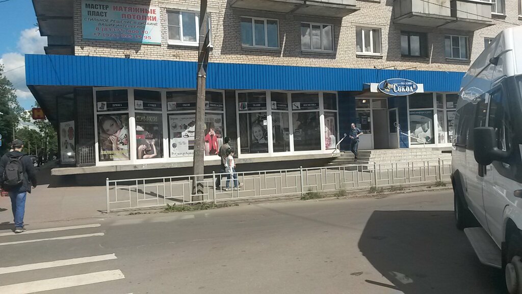 Если не ошибаюсь"Сокол". Хороший магазин, особо отмечу, что продолжает свою работу уже не первое десятилетие . Рекомендую)) Ассортимент товара удовлетворит большой спектр запросов.