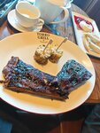 Хорошее заведение, вкусно. Не очень удобная посадка внутри: не глубокие диваны, очень маленькие столы рассчитанные на 3 персоны, но они очень маленькие. Чай имбирь - он без чая, вода с нарубленным имбирём огромными кусками, раза 3 говорили, что это просто вода с огромными кусками имбиря - всем пофигу. Свиные ребра (порция на двоих) - хорошая порция, вкусные ребра. Бургер с говядиной - вкусно, не большой, но вкусный. Стейк мачете - вкусный. Можно заходить периодически.