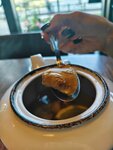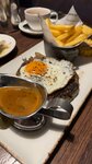 Пока отдыхали, успели посетить ресторан три раза. Достойный бифштекс и к нему просто безумный перечный соус. Такого вкусного соуса я еще ела 😁 В один день муж заказал крылья, есть можно, но ожидал что будут более поджаристые. Вкус был будто вареные. Сметано-сырный был очень вкусный. Очень понравился салат с баклажанами и сыром халуми. А еще у них вкусный десерт крем-брюле ☺️ Хорошее обслуживание, кусачие цены на стейки и вкусная еда 😁