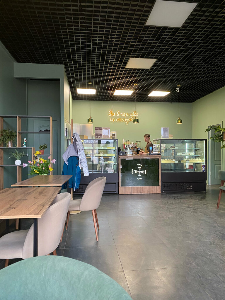 уютная стильная кофейня-кондитерская, довольно большой выбор тортов и напитков, вкусный лимонад на настоящем пюре!!! удивительно, что такое есть на правом