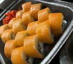 Запеченные ролл Мореман. креветка, огурец, сливочный сыр, икра масаго, нежным соусом.