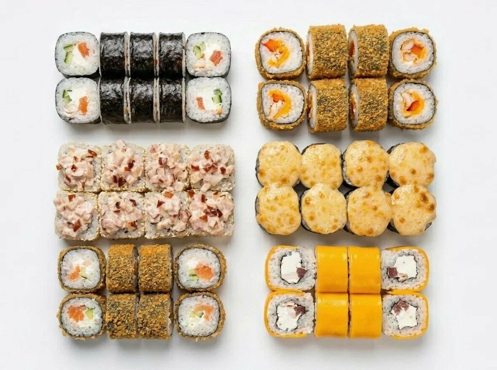 Состав: Запеченные: 1. Рис, Нори, Огурец, Сыр, Краб Шапка яки 2. Рис, Нори, Сыр, Курица, Помидор (в кунжуте) Шапка сырная Холодные: 1. Рис, Нори, Сыр, Огурец, Жаренный лосось(В масаге, ) 2. Рис, Нори, Сыр, Помидор, Пекинская капуста, Огурец (В бк...