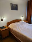 Недорогая гостиница времён СССР. Ремонт, видимо,был тогда же. Номера нуждаются не только в обновлении ( напольные покрытия истерты,кровати провалены,покрывало в пятнах крови), но и в уборке. Давайте вы все же помоете лампы? Судя по нашему номеру, последний раз это делали в момент крепления этой самой люстры(на втором фото). Грязь невозможная! Пожалуйста,постирайте покрывало, вымойте номер и средняя троечка обеспечена. Сейчас это максимум полтора балла. И то только за цену. Барышня на ресепшене ! Вы бы улыбались гостям! А не хлюпали носом с недовольным видом. Вы же типа лицо отеля. По вам судят обо всем. Вам тоже не больше полутора баллов за гостеприимство. Завтрак удивил отсутствием кофе. Ребята! Серьёзно? У вас на завтраке нет кофе? Нет даже автомата с кофе? Завтраки в отеле хм...мягко говоря,странные.