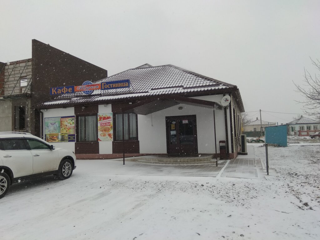 Как для маленькой деревушки просто класс уютная гостиница всего две комнаты в комнатах очень комфортно. Кафе. Очень вкусно. Блюда свежие готовят прямо при тебе подают все горячее. Мы останавливались на 2-е суток цены вообще не кусаются. 2 суток на двоих всего 4000. Вообщем как кафе так и гостиницей очень довольны. А ещё на территории бегают 2 милейшие просто собачки ребенка отпускали спокойно играть и супер ласковая кошечка. Отдельное спасибо администратору встретила все объяснила показала рассказала ещё и перед отъездом пожелала удачи вообщем милая позитивная девушка